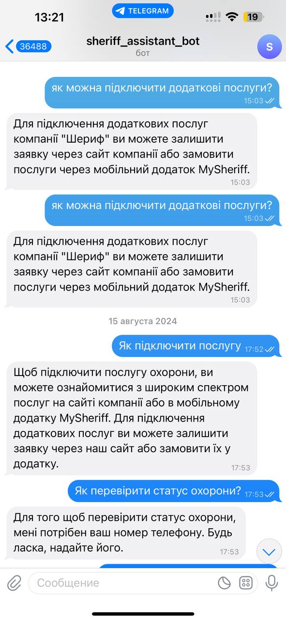The AI chatbot automates customer support for security companies, responding to requests, checking balances and system statuses, and reducing maintenance costs. The solution reduced customer request processing time by 70%, increased operator efficiency, and optimised costs through online support automation.